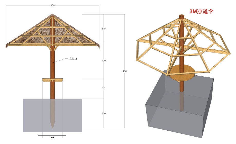 傘架結構:防腐木質 或 鋼結構。